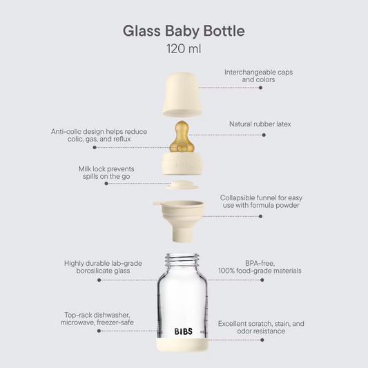 Glass Baby Bottle Complete Set 120ml Latex - Ivory